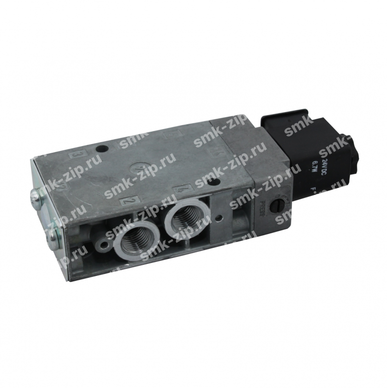 Условный проход NO 7 mm. Пропускная способность 1100 л/мин. Рабочая схема 5/2. t -50°С…+80°С. Max -10 bar. Напряжение катушки: 24, 110, 220 V (DC/AC). В комплекте с катушкой ЭМ. Коннектор для заказа арт. 43650.